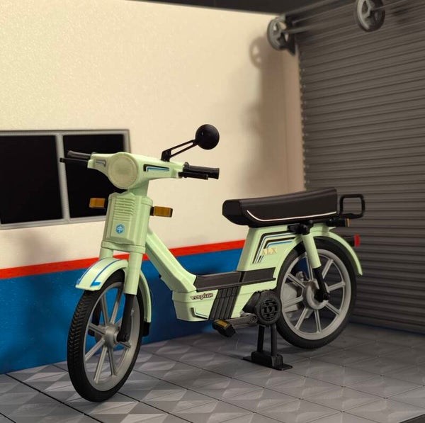 Esta Maqueta de ALX verde esta personalizada segun indicaciones del cliente con un cambio de color y una amortiguador izquierdo trasero.