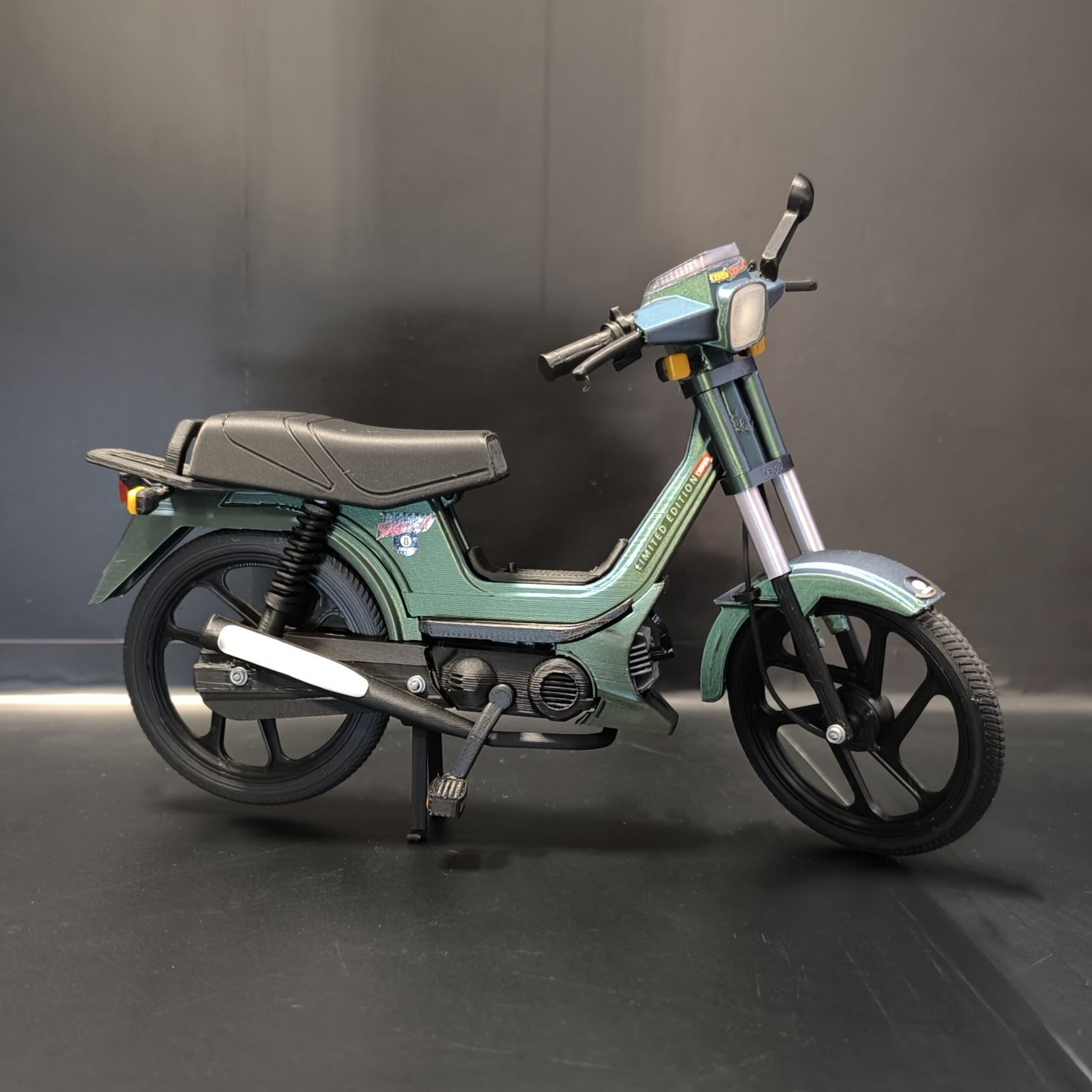Impresa con tecnología 3D por partes consiguiendo un nivel de detalle asombroso, completamente montada o en kit para que disfrutes montando este iconico ciclomotor.